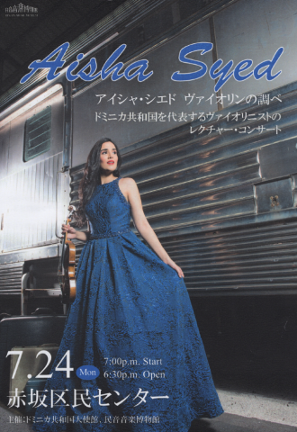 En 24 de Julio, se realizó el concierto de Aisha Syed, una violinista más fina en la República Dominicana en Akasaka Kumin Center. La sala del concierto era completamente llena con los audiencias y todo el mundo se disfrutó su música con pasión, incluido 4 canciones extras. Después, fue a la ciudad de Matsudo para otro concierto. ¡Esperamos su regreso a Japón!