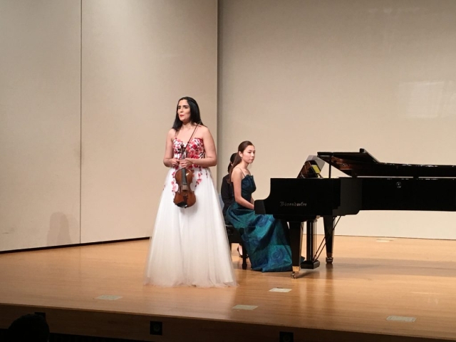 去る7月24日(月)、赤坂区民センターにてドミニカ共和国が誇るバイオリニストのアイシャ・シエドさんのコンサートが行われました。会場は満員で、演奏技術は勿論のこと、アイシャさんの熱意溢れる演奏に観衆の皆さんが酔いしれました。特にアンコールでは4曲演奏され、会場が大変盛り上がりました。この後、千葉県松戸市でもコンサートをされました。アイシャさん、またのご来日をお待ちしております!