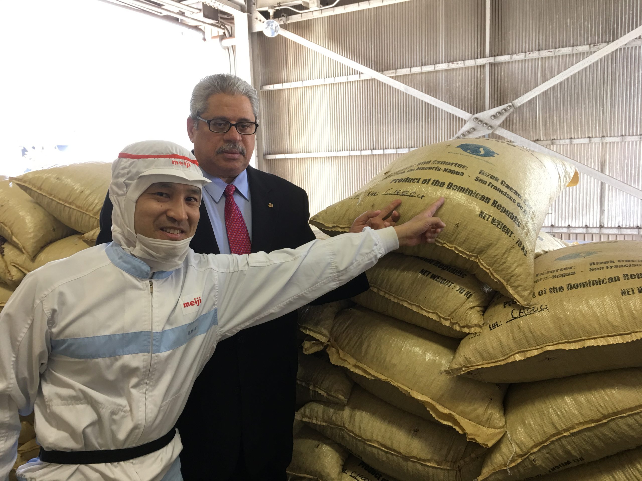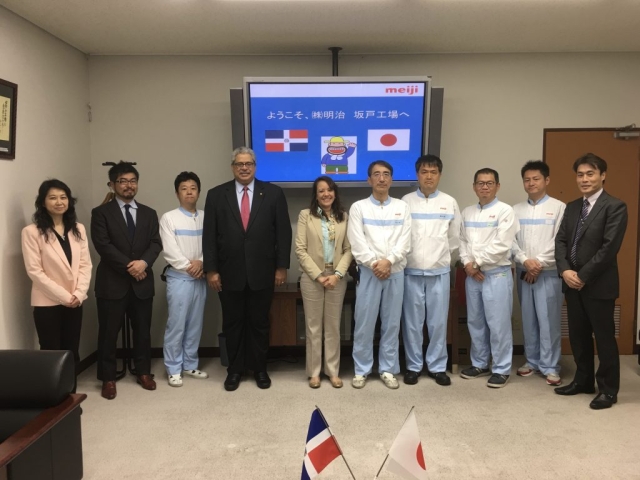 En 25 de abril, visité a la fábrica de Meiji (Sakado, Saitama) dónde produce chocolate con base de cacao dominicano. La misión dominicana dirigida por el Embajador Domínguez Sr. Embajador Domínguez y Srta. Ministra Consejera Saladin también chequearon la escena de la producción de chocolate. Una cosa más impresionante fue el momento que los granos de cacao fermentados se cayeron desde grandes fundas a la almacén dónde estaba frente de las línea de producción. Además, con acompañamiento del jefe de la fábrica y los oficiales de marketing, podíamos recorrer a maquinaria e instalaciones de la fábrica. Como la fábrica le oferta un tour a la pública, si tiene interés, ¡¡visita a la fábrica de Meiji!!