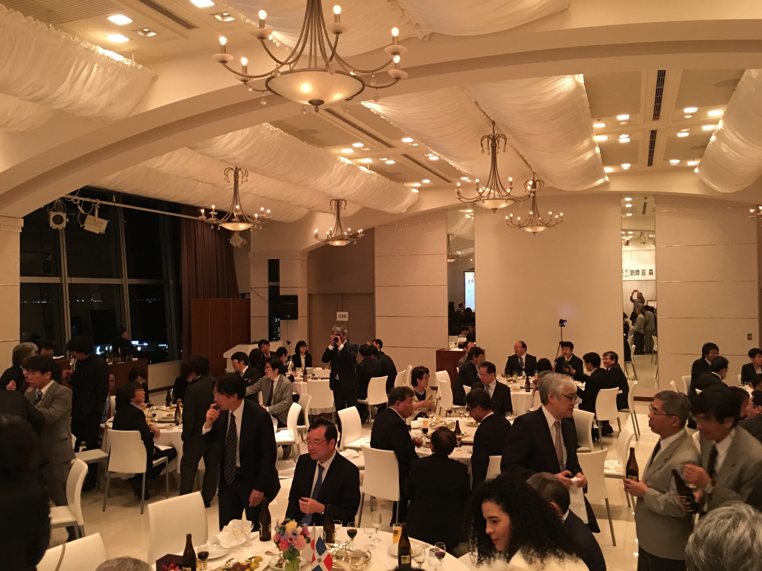 祝賀会では来賓として、ドミンゲス駐日大使が祝辞を述べられました。本祝賀会は、大分大学医学部関係者を中心に、過去にプロジェクトに関わった方々が数多くご出席されました。多くの出席者が、ドミニカ共和国の医療協力に関する新プロジェクトへの参加を希望し、大いに盛り上がりました。