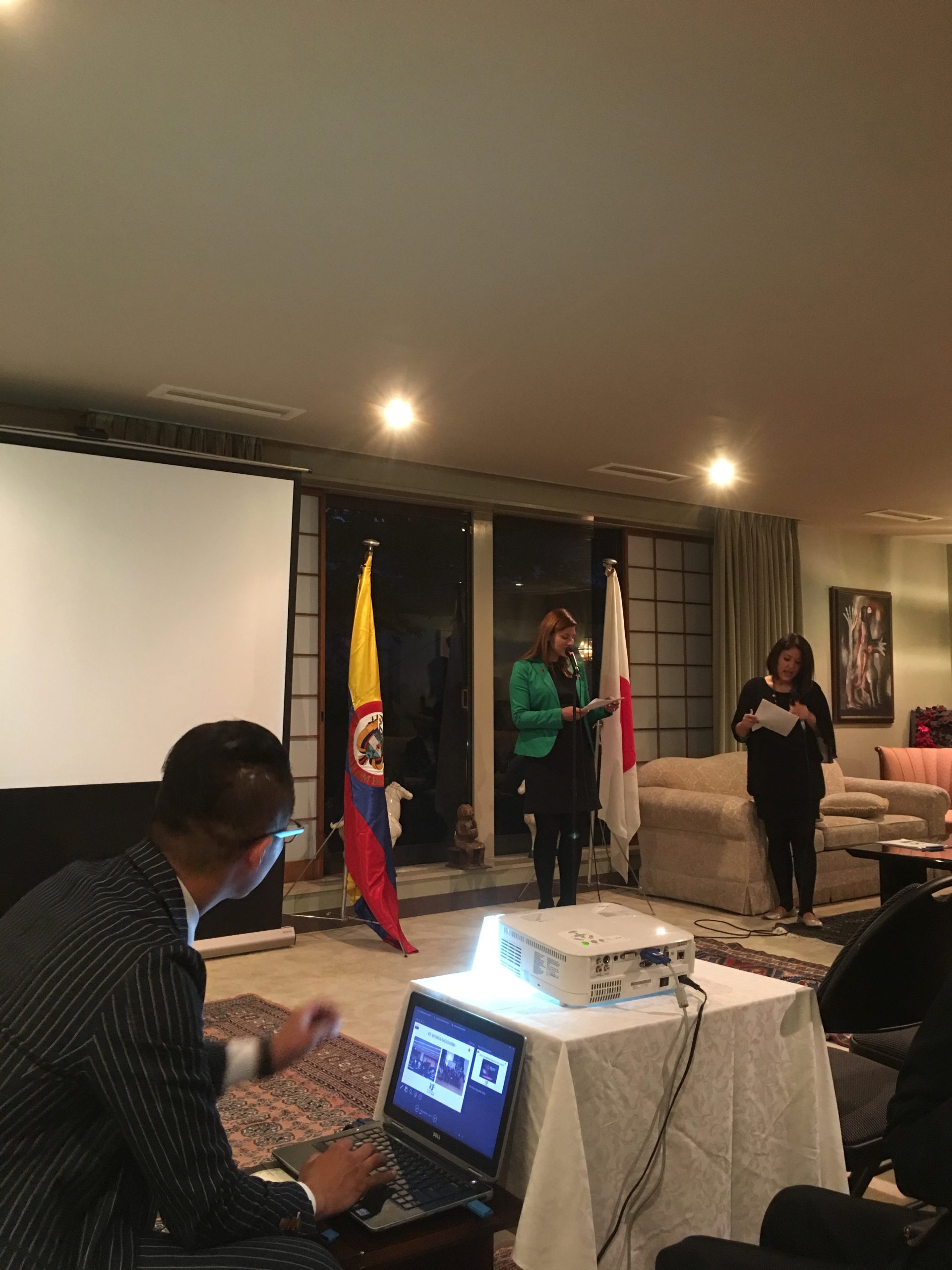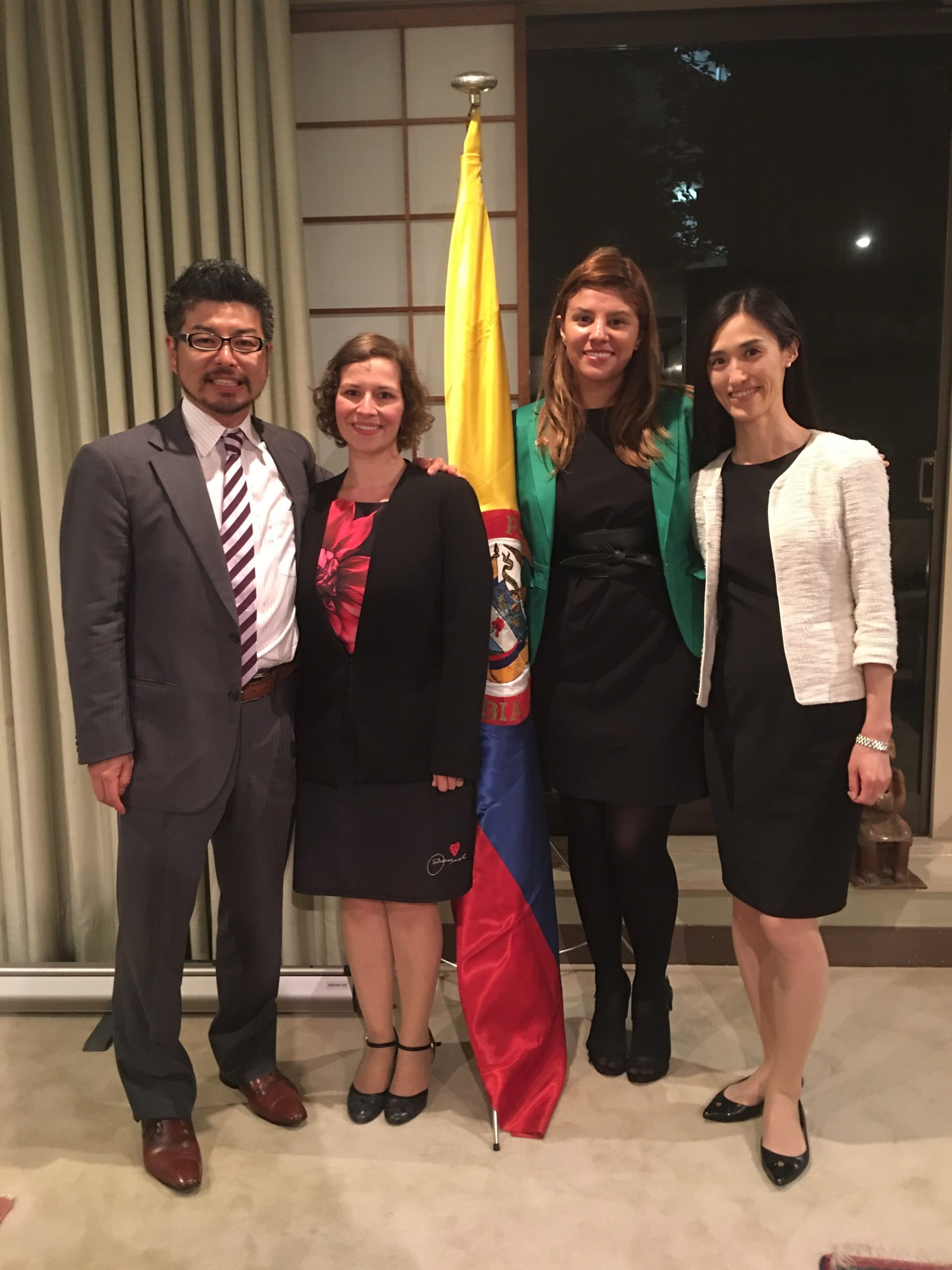 En 2 de Junio, participamos a la fiesta de “Noche Colombiana”, presentado por Koyamada International Foundation (KIF) en la Embajada Colombiana en Tokio. El Sr. Shin Koyamada, el actor en Holywood, como su apariencia a “Last Samurai” y está manejando la fundación con su esposa, la Sra. Nia Lyte, una nacional colombiana para expandir las actividades del intercambio internacional y cultural. Después de sus presentación, nos disfrutamos las comidas colombianas. Era un gran honor y placer para saludar al Sr. Gabriel Duque, el Embajador Extraordinario y Plenipotenciario de Colombia en Japón y conversar con la Srta. Paula Esguerra, encargada asuntos comunicaciones, el Sr. Hiroshi Wago Rojas, representativo PROCOLOMBIA en Japón, y también con el Sr. Isamu Kashima, el CEO de Kanagawa Dental University. ¡¡Estamos siempre alegre para asistirnos a esos tipos de fiestas!!