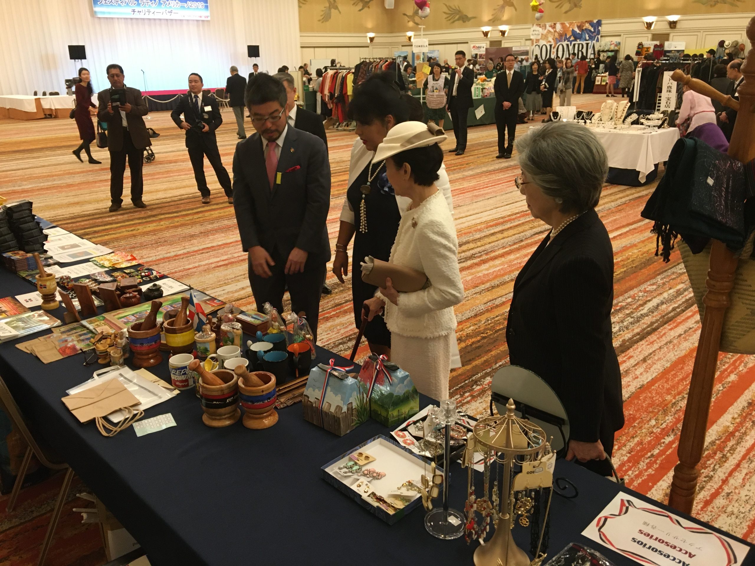 去る11月25日(月)、毎年恒例の「フェスティバル・ラティノアメリカーノ」(チャリティーバザー)に参加してきました。今年も当協会は駐日ドミニカ共和国大使館ブースの隣にスペースを頂戴し、ドミニカンコーヒー、チョコレート、コーヒーカップ、その他民芸品、絵画等を販売させて頂きました。毎年数千人が来訪されるバザーで、参加者の皆様はラテンアメリカ各国の食事や(ドミニカ共和国は毎年恒例「バンデラ弁当」でした!)、民芸品、コーヒー、チョコレート、アルコール、宝石類を購入されておりました(本バザーの売上はラテンアメリカ諸国の恵まれない子どもたちの教育や医療等に使われます)。最後にはラッフルの当選発表が行われ、豪華景品を大勢の方々た持ち帰っておられました!本バザーを通じて、日本の皆さまがドミニカ共和国を含むラテンアメリカ諸国の文化に触れていただくことは本当に嬉しいことであると思っております! 来年もお楽しみに!
