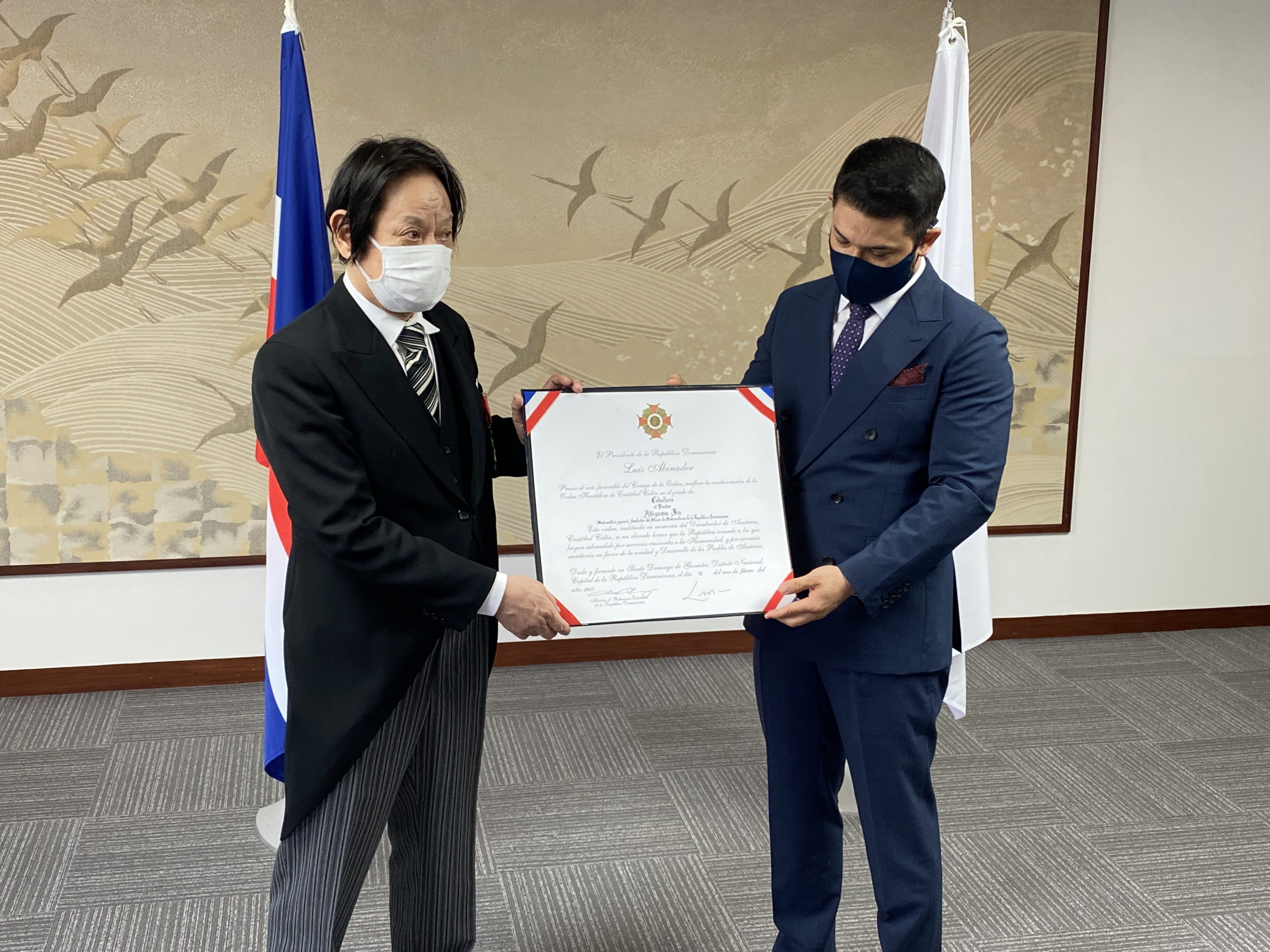 El 24 de junio, en la Salón Latinoamericano de Nishi-Azabu, la Embajada de la República Dominicana en Tokio llevó a cabo una ceremonia especial para otorgar una medalla a Jin Akiyama, profesor de la Universidad de Ciencias de Tokio. El profesor Akiyama ha estado trabajando durante muchos años para transmitir la alegría de las matemáticas a todo el mundo. Especialmente en República Dominicana, estuvo involucrado en la implementación de “caravanas de educación matemática” en todo el país, y también lideró la construcción del “Museo de las Matemáticas” desde su concepto. El profesor contribuyó enormemente al desarrollo de la educación matemática en el país. En honor a sus muchos años de logros, el Embajador Robert Takata otorgó la “Orden Heráldica de Cristóbal Colón” al Profesor Akiyama en nombre del Presidente Luis Abinader. En la jornada participaron personas estrechamente relacionadas con la República Dominicana.