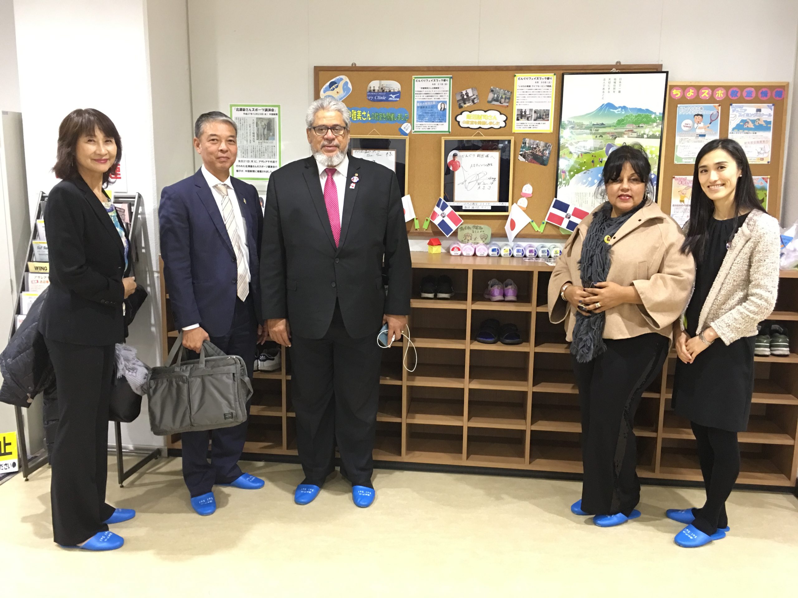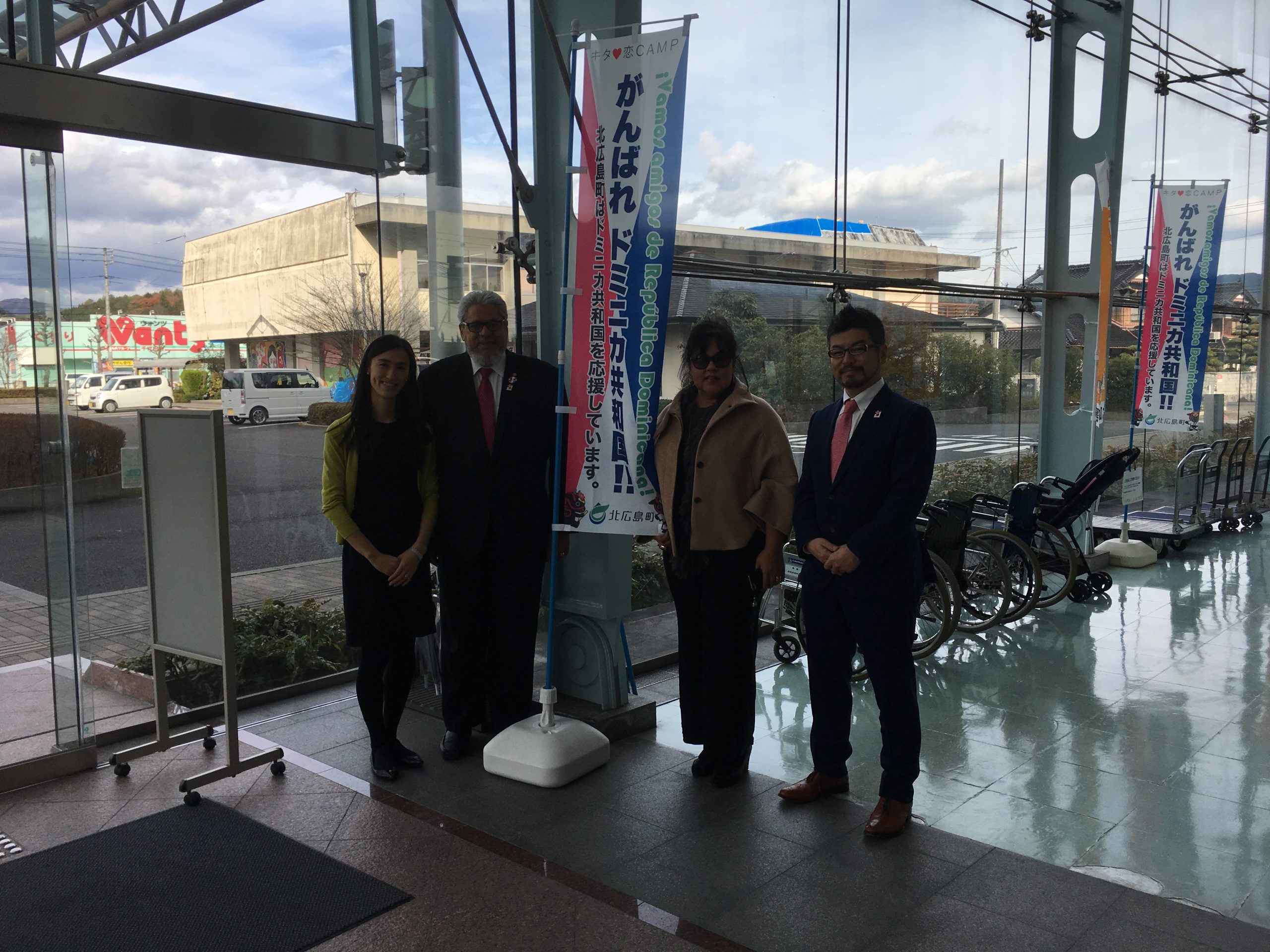 11月23日、ドミンゲス駐日大使及び同大使夫人と共に、広島県北広島町を訪問しました。北広島町は、2020年東京オリンピックにおけるドミニカ共和国選手団(柔道、陸上競技)の事前合宿地で、今回箕野町長をはじめ、同町職員及び、ドミニカ人選手が練習する町内施設の管理をされている「どんぐり財団」の皆様とお話する機会に恵まれました。柔道チームは既に「柔道グランドスラム大阪2018」出場のため、11月10日〜22日の間、同町に滞在し、町の方々と沢山交流をされ、町を“明るく”されたそうです(笑)。来年は横浜で「IAAF世界リレー2019」が開催され、ドミニカ共和国選手団も参加予定で、北広島市に滞在するとのことです。東京オリンピックを控えて、スポーツの世界でも益々両国間の関係が強化されそうですね!